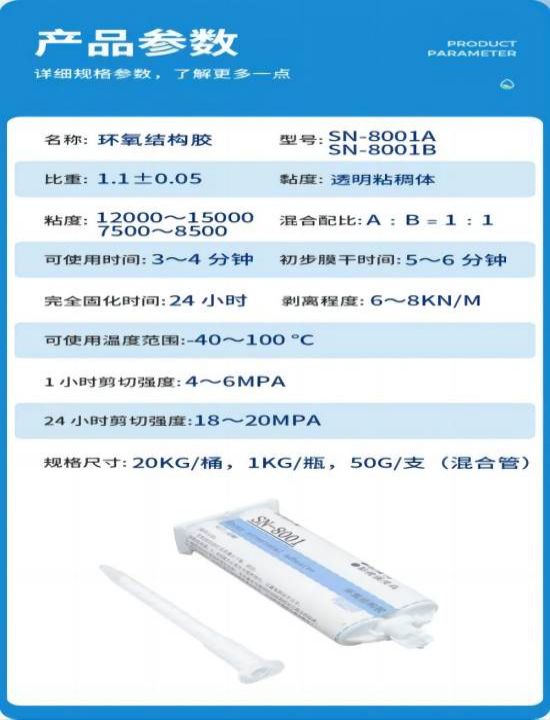 SN-8001 环氧结构胶批发车灯粘接密封胶加固双组分耐高温金属结构胶